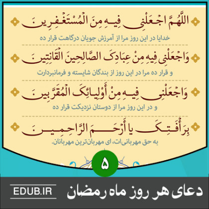 در دعای روز پنجم ماه مبارک رمضان آمده است: «در سایه استغفار انسان به موهبتهای الهی دست پیدا میکند؛ «خدایا مرا از مستغفرین قرار بدهد» یعنی اینکه واقعاً استغفار کنم و اگر مال حرامی دارم، آن را حلال کنم، به گناهی که قبلاً ک