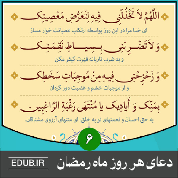شرح دعای روز ششم ماه مبارک رمضان