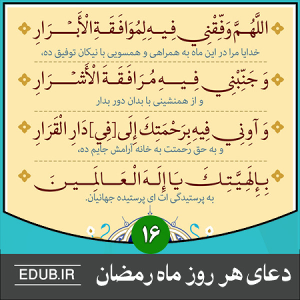 شرح دعای روز شانزدهم ماه مبارک رمضان