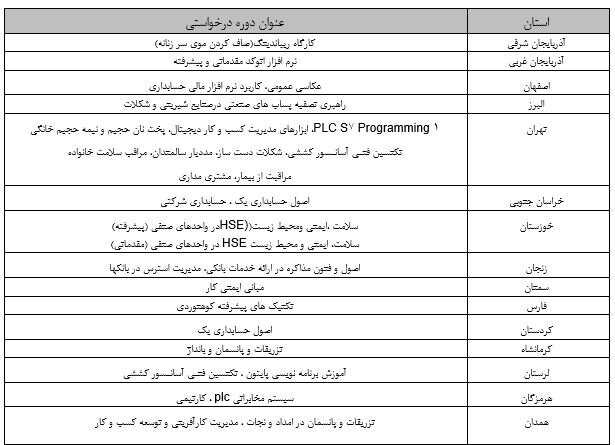 فهرست مجوزهای صادر شده در شصتودومین جلسه کارگروه آموزشهای عالی کوتاه مدت علمی کاربردی به شرح زیر است: