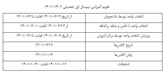 اعلام زمان انتخاب واحد نیمسال اول تحصیلی ۱۴۰۲_۱۴۰۱ دانشگاه جامع علمی کاربردی
