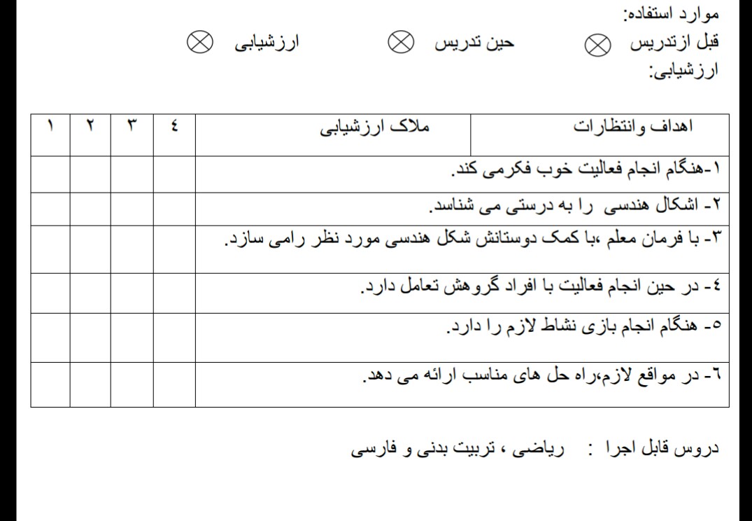 پس از هر بار نام بردن شکل هندسی از طرف شما، دانش آموزان شکل مورد نظر را با گرفتن