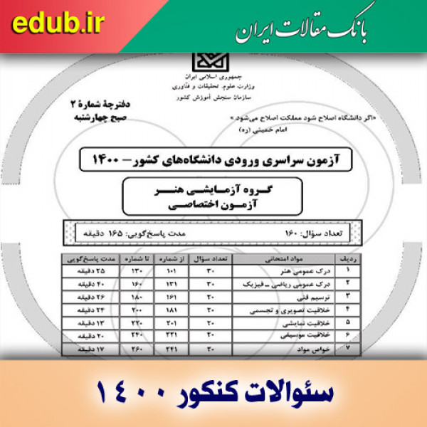 - دفترچه سئوالات کنکور 1400----کنکور هنر