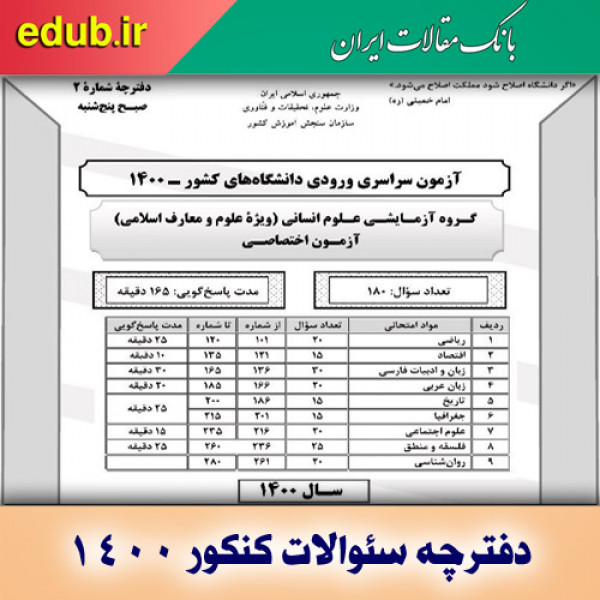 - دفترچه سئوالات کنکور 1400----کنکور علوم و معارف اسلامی