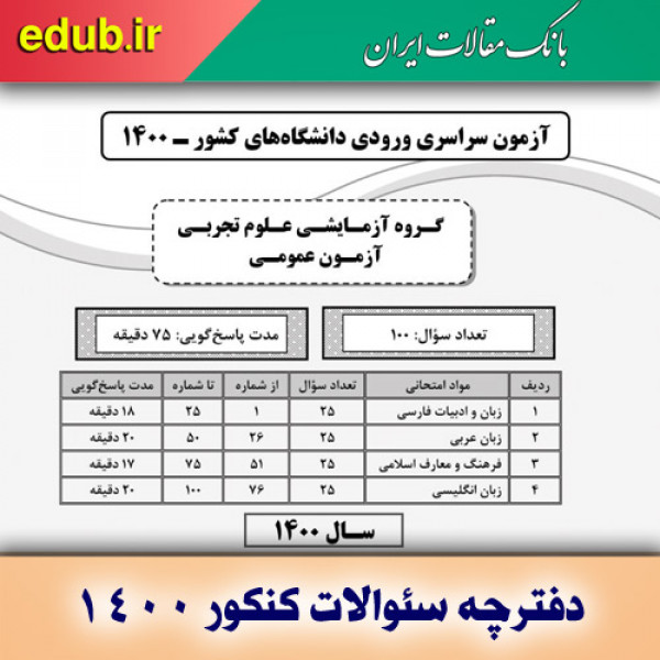 - دفترچه عمومی گروه آزمايشی علوم تجربی کنکور 1400