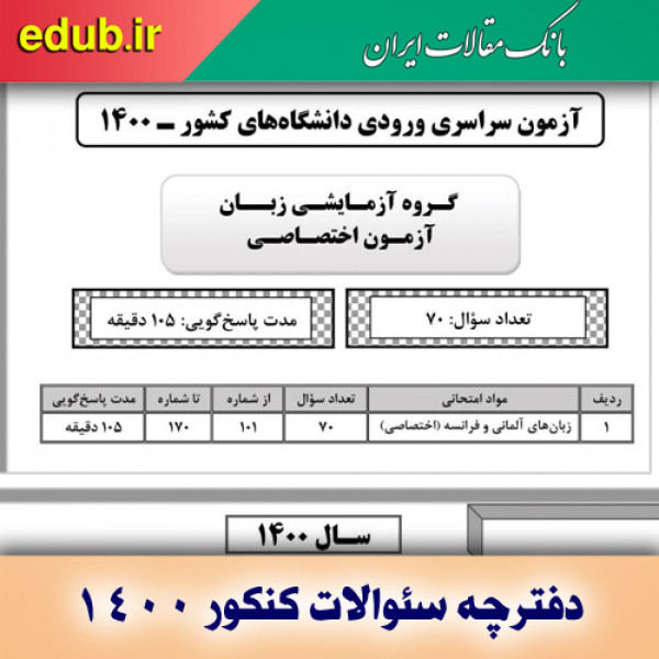 سئوالات دفترچه اختصاصی کنکور سراسری سال 1400 زبانهای آلمانی و فرانسوی