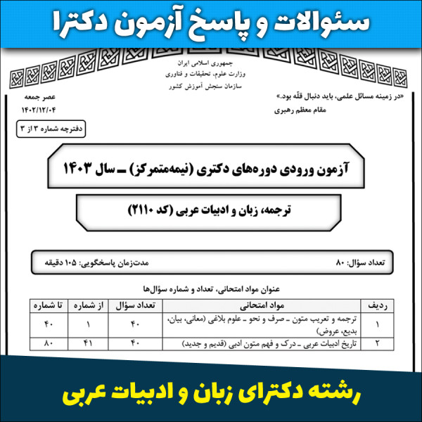 سئوالات آزمون دکترای زبان و ادبیات عربی سال 1403