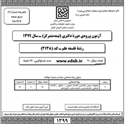 سئوالات و پاسخنامه آزمون دکترای سال 99 رشته فلسفه علم