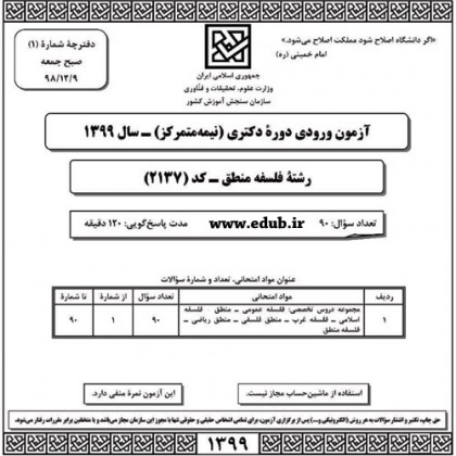 سئوالات و پاسخنامه آزمون دکترای سال 99 رشته فلسفه منطق