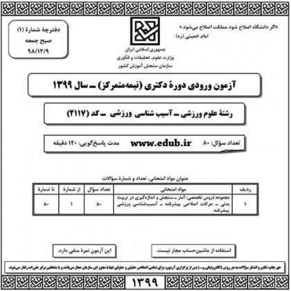 سئوالات و پاسخنامه آزمون دکترای سال 99 رشته آسیبشناسی ورزشی